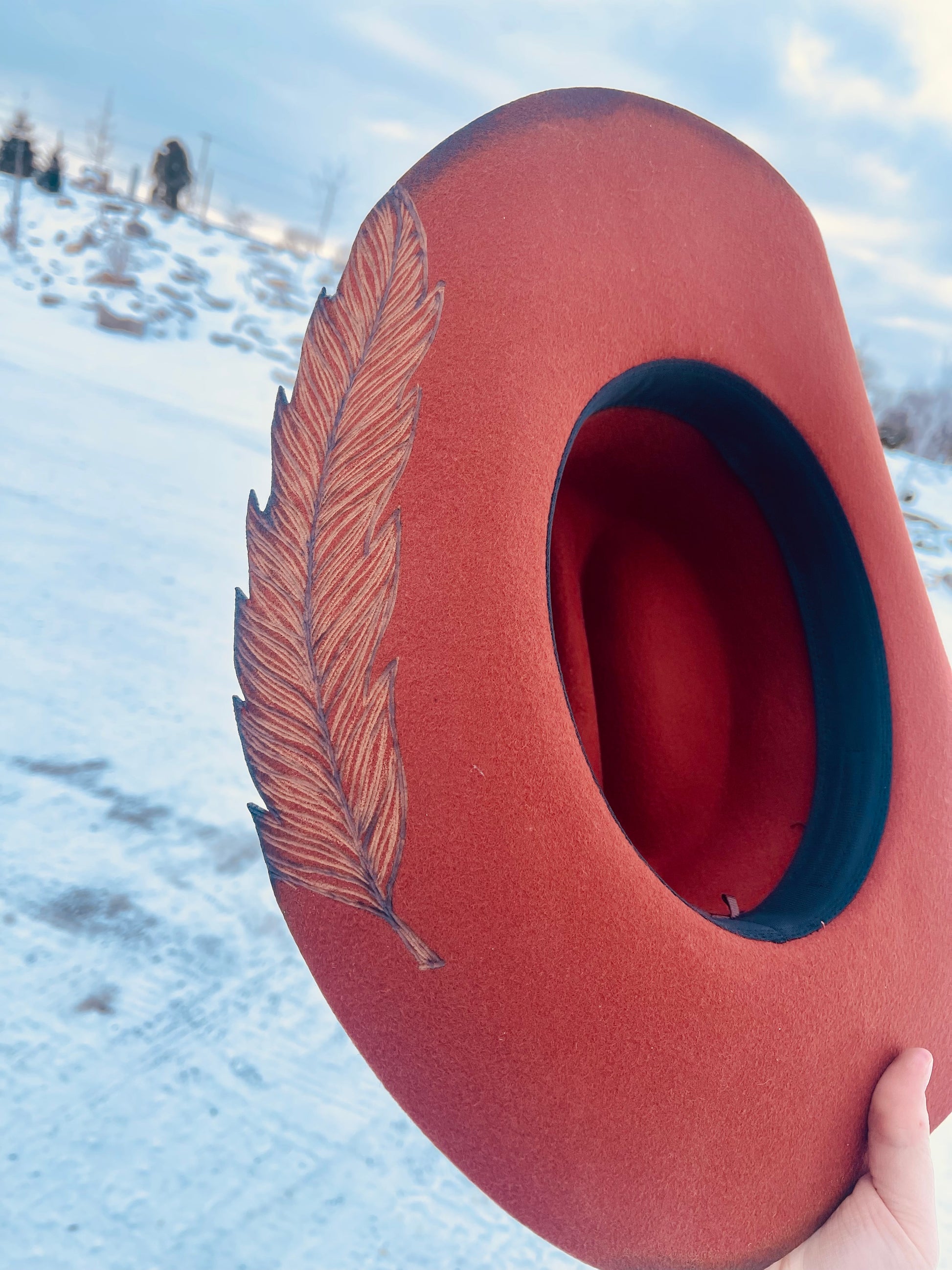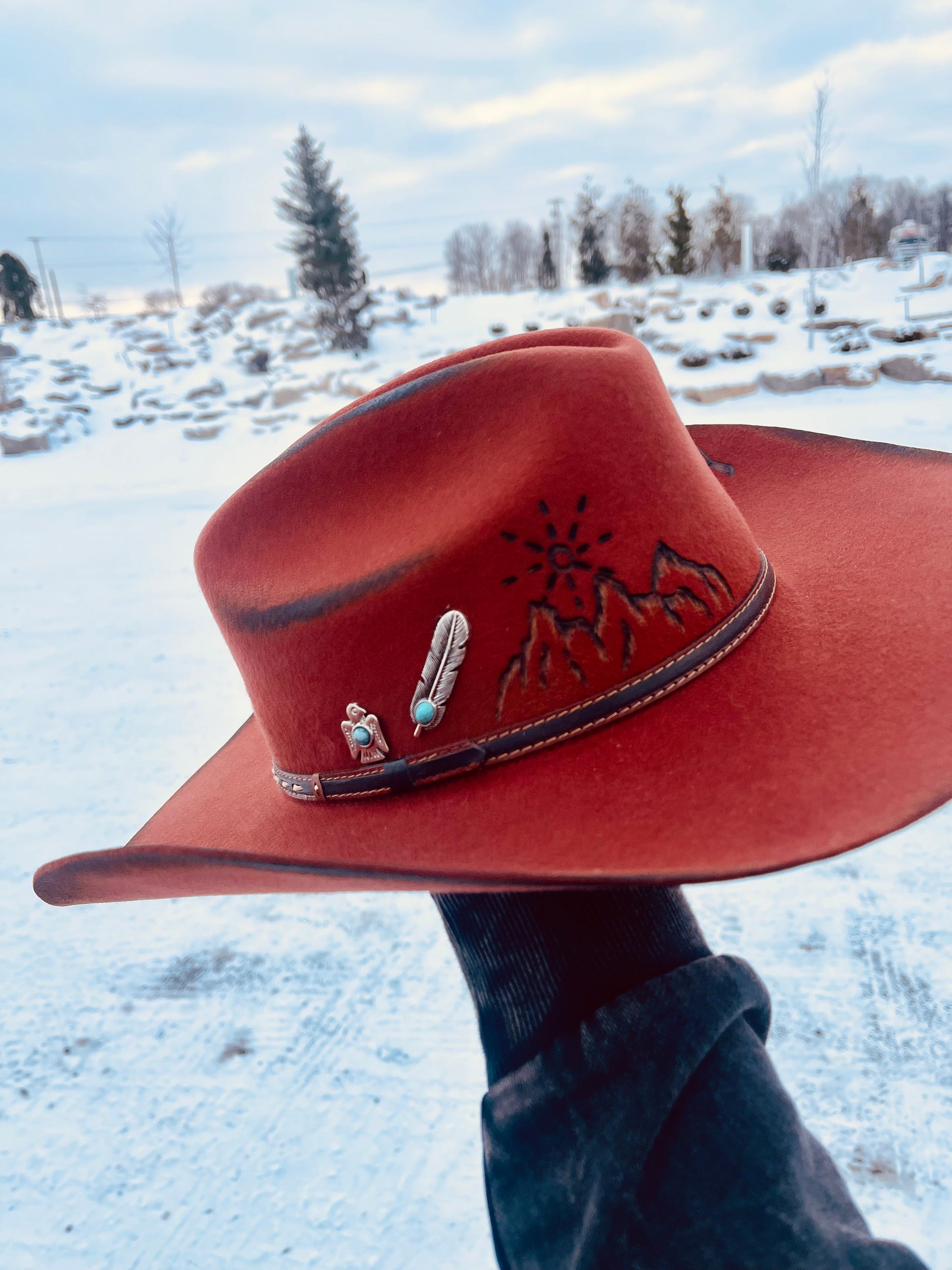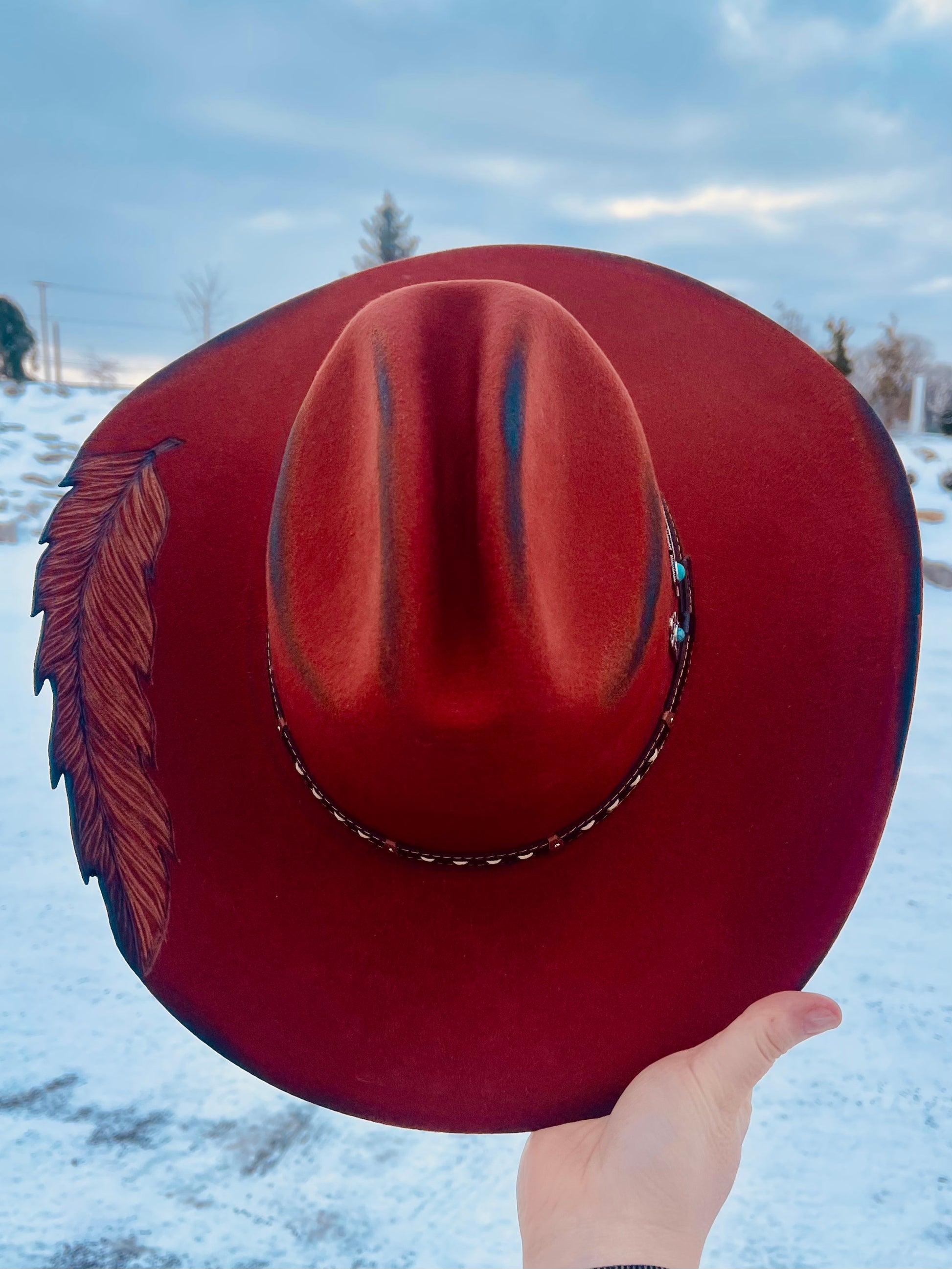 Each hat is hand made with genuine cowhide- each piece of cowhide will vary slightly. These are made to order, your hat will be as identical to the original as I can make it.