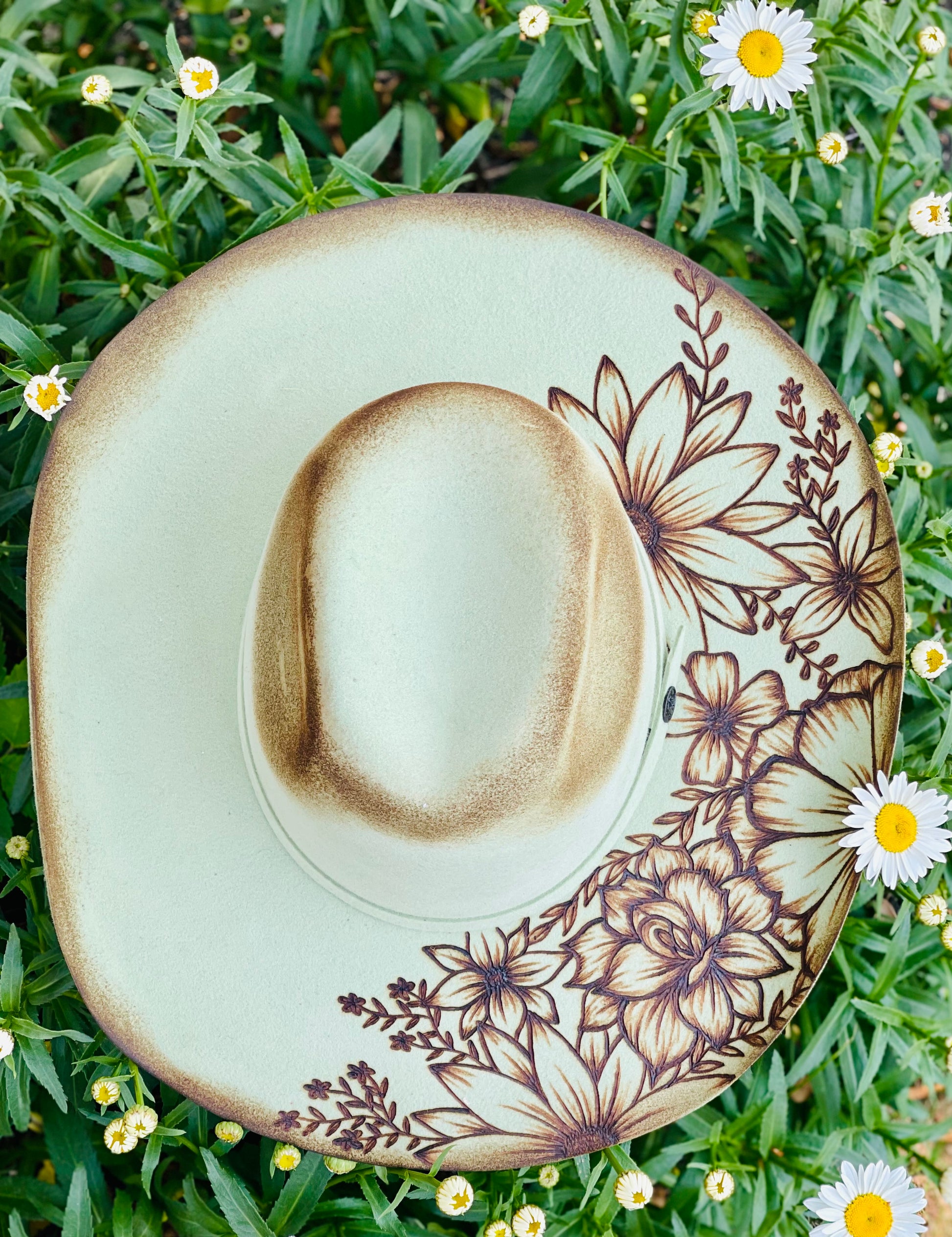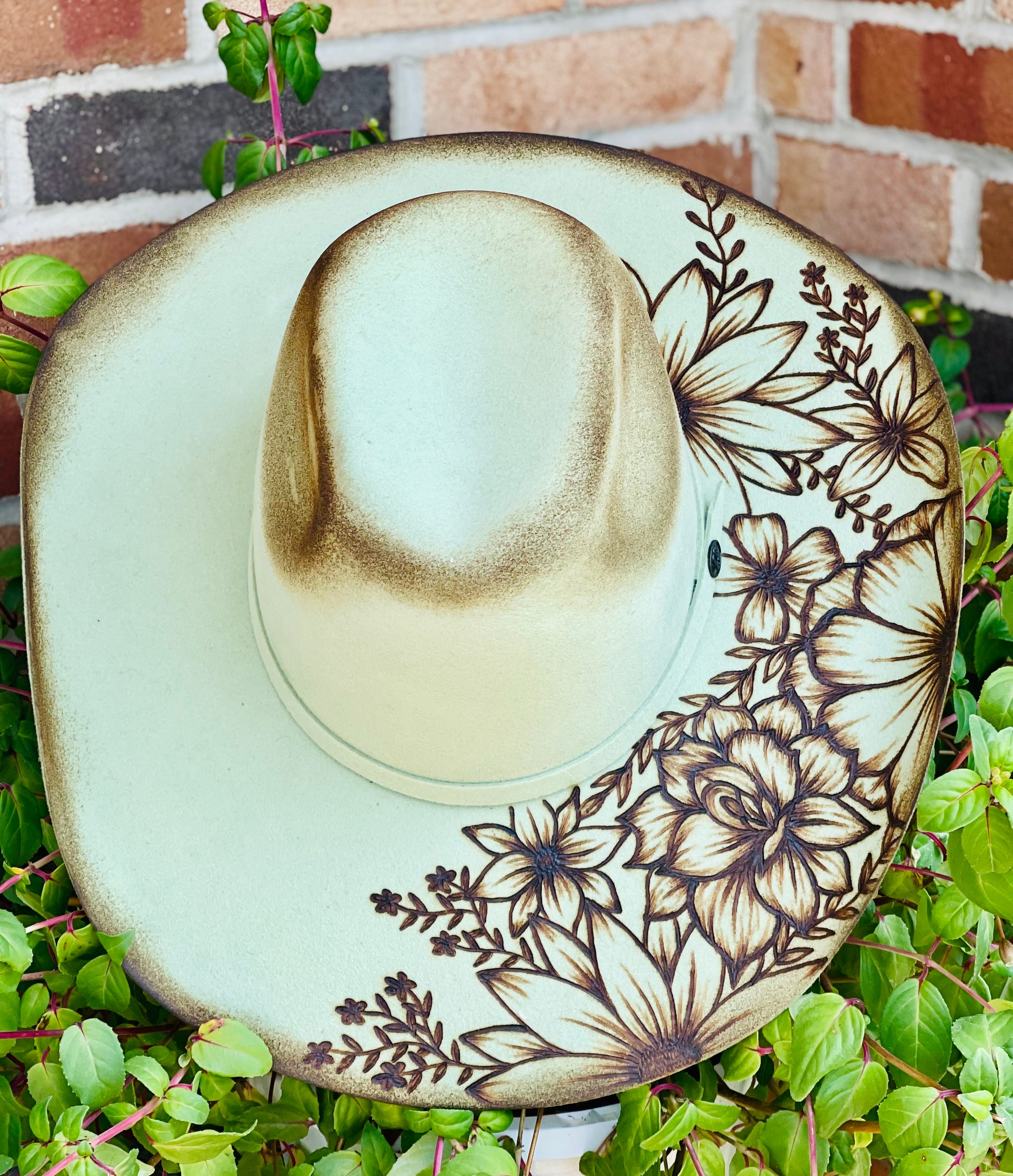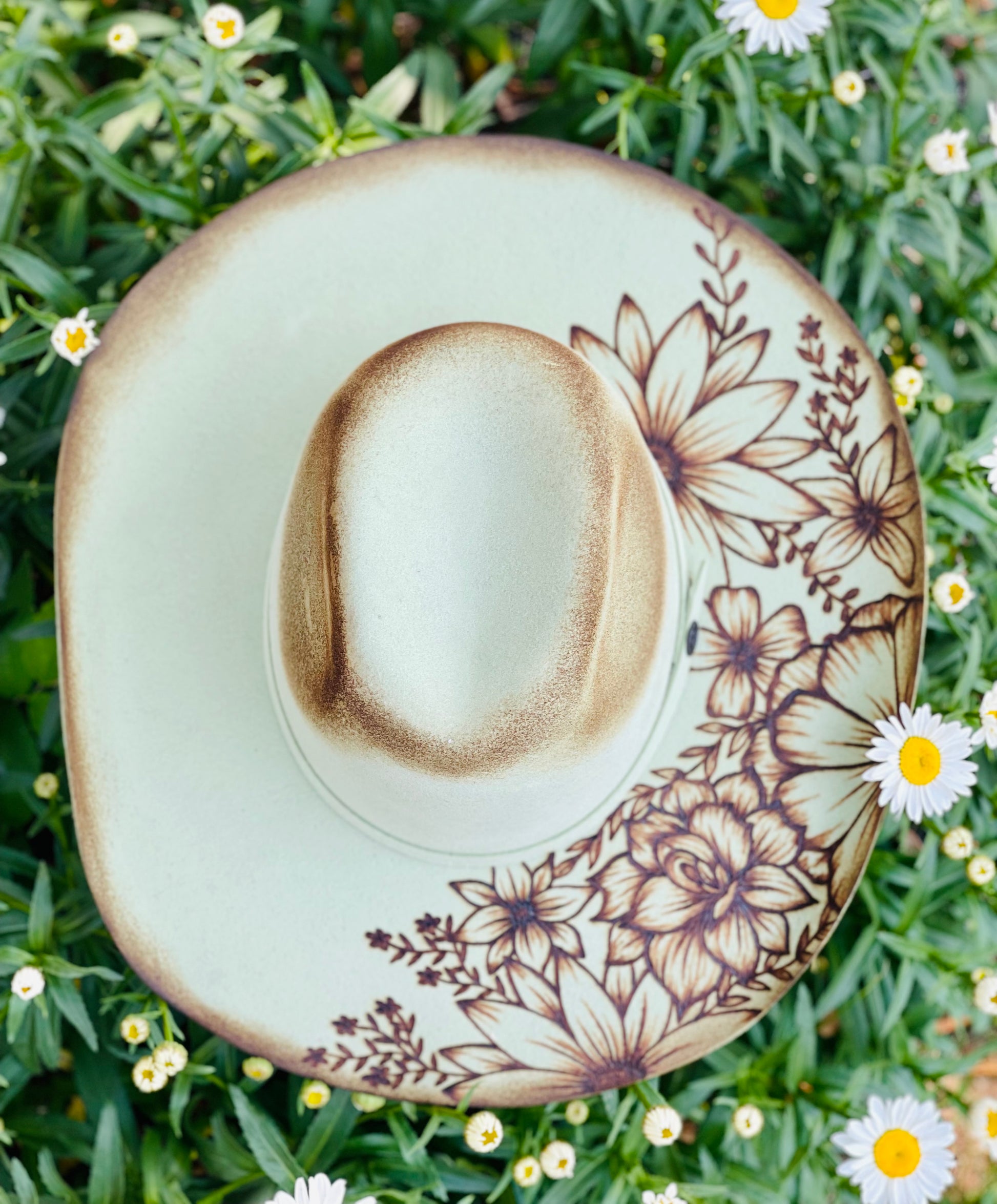 Each hat is hand made with genuine cowhide- each piece of cowhide will vary slightly. These are made to order, your hat will be as identical to the original as I can make it.
